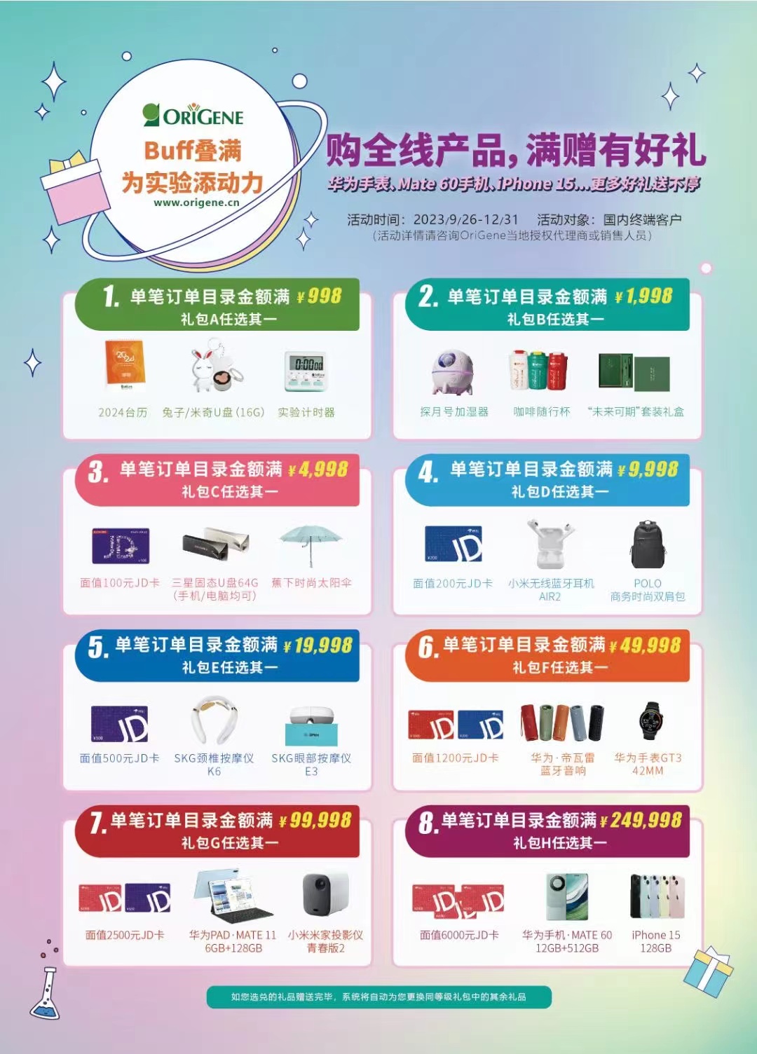 購ORIGENE全線產品,滿贈有好禮 華為手表、Mate 60手機、iPhone 15..更多好禮送不停